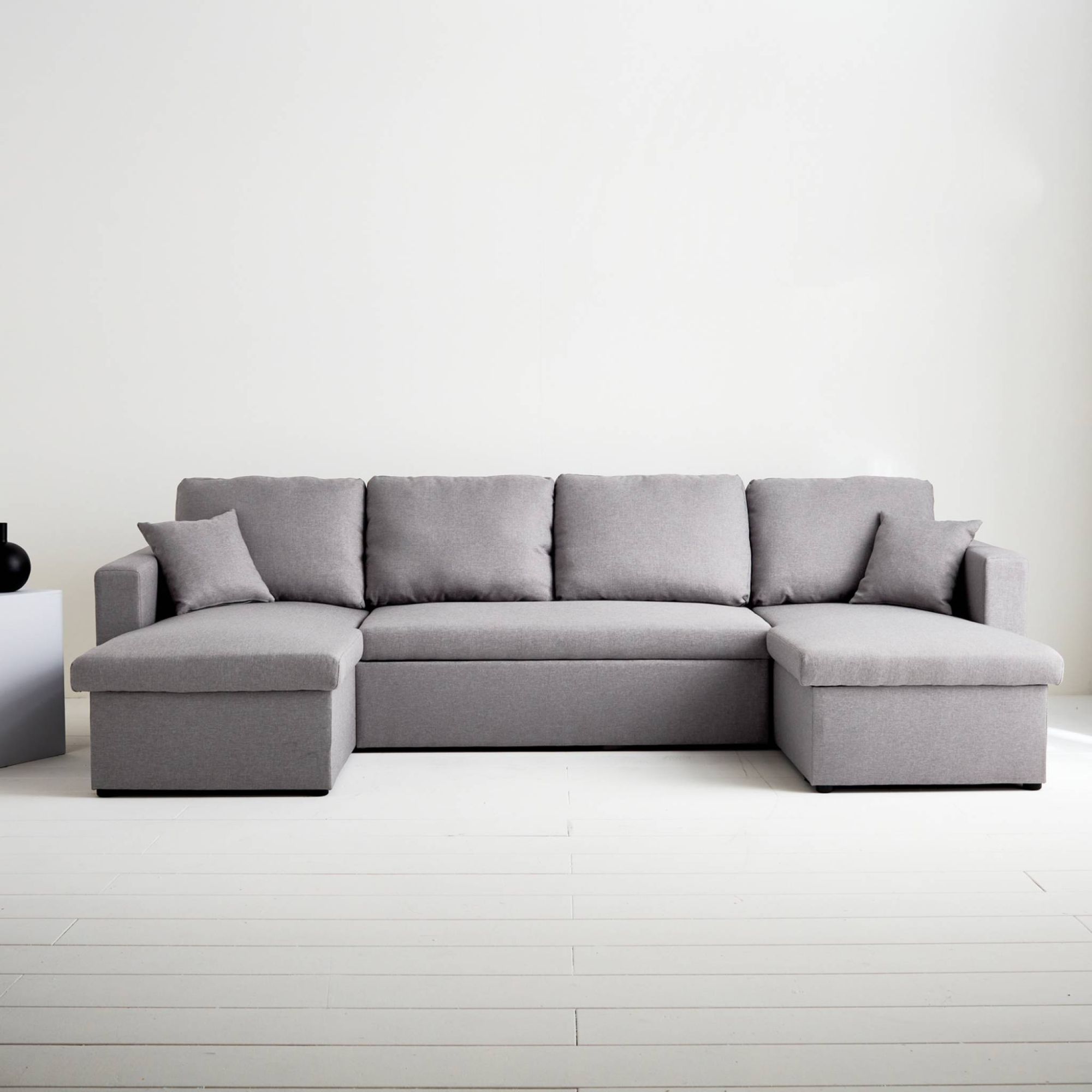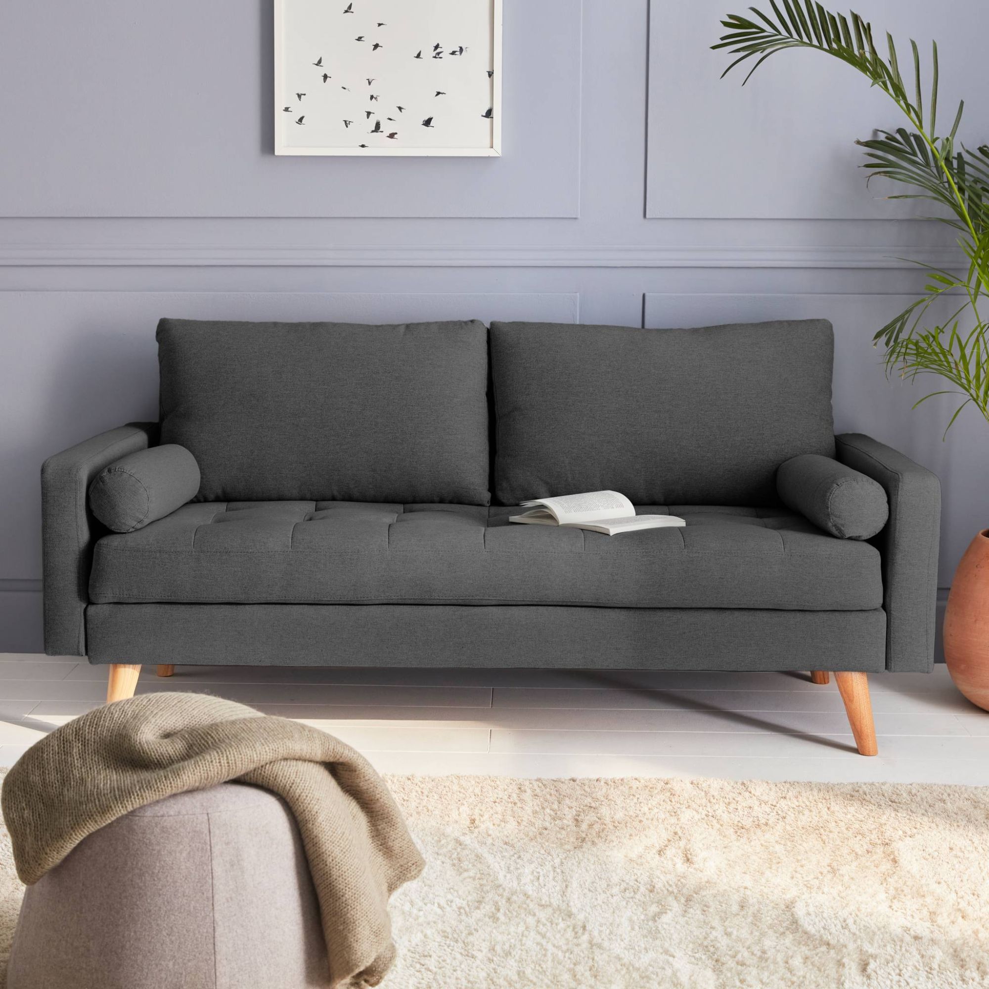 1 Canapé En Tissu Gris Foncé 3 Places Scandinave Fixe Droit Pieds Bois – Sweeek , 2 Canapé Panoramique Convertible En Tissu Gris Clair. 4 Places. Coffre Rangement. Lit Modulable