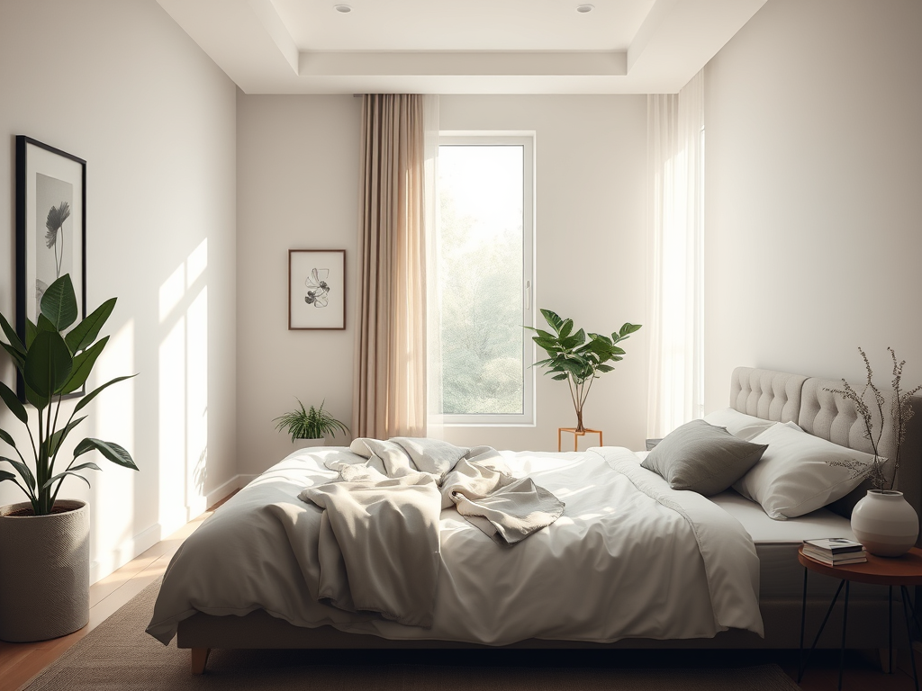 - Entretien régulier : Une chambre minimaliste doit rester impeccable. Faites le lit quotidiennement et rangez immédiatement pour préserver l’esthétique.
