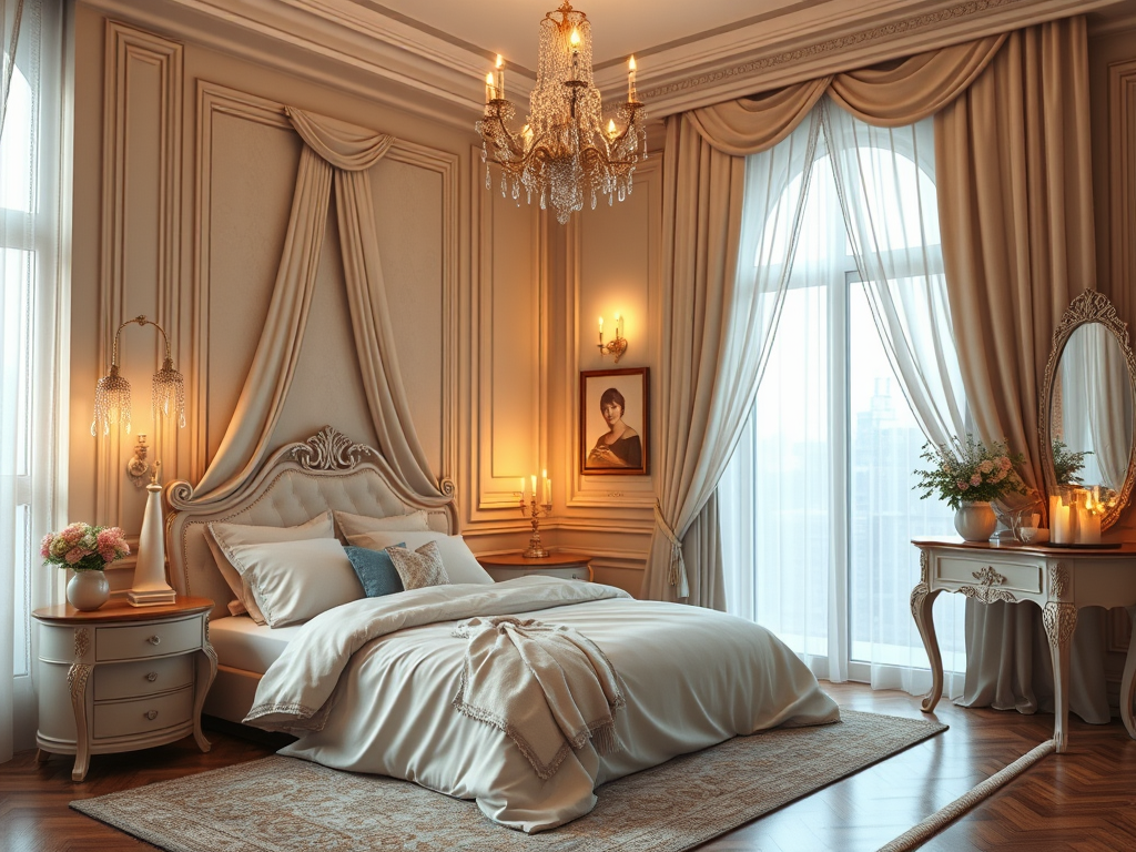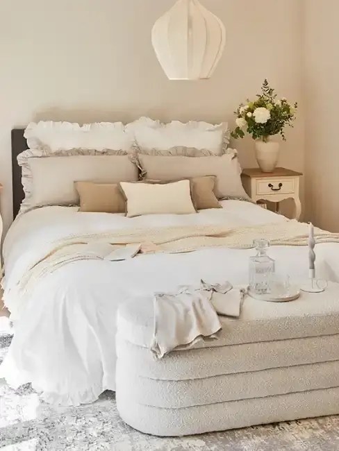 - Textiles raffinés : Utilisez des matières naturelles comme le lin, le coton ou la laine pour la literie et les rideaux. Une parure de lit unie avec des textures subtiles (ex. lin froissé) ajoute une touche élégante.