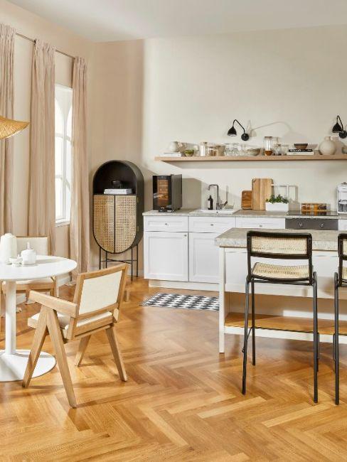 La cuisine blanche et bois est un véritable incontournable à adopter dans son intérieur. Le blanc est la teinte idéale pour apporter de la luminosité à la pièce. Avec le bois, ils forment un duo indémodable frais, souvent synonyme style scandinave mais, comme vous allez le voir, bien plus polyvalent.