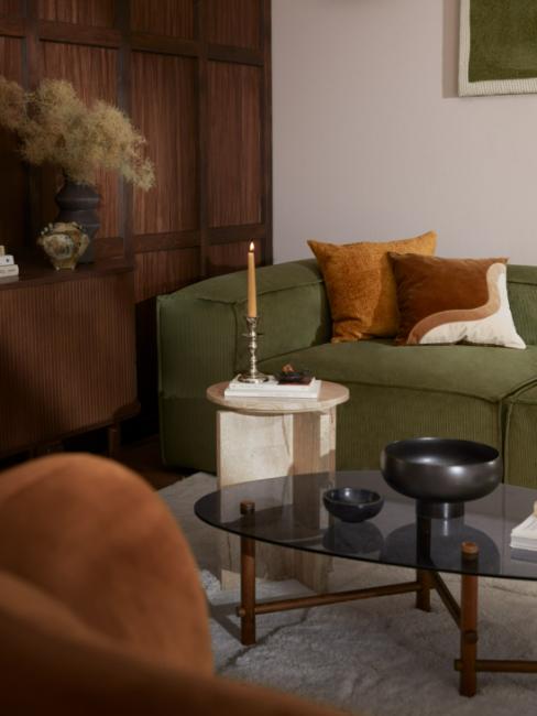 - Éclairage d’ambiance : Des lampadaires ou lampes sur pied près du canapé pour une atmosphère chaleureuse.