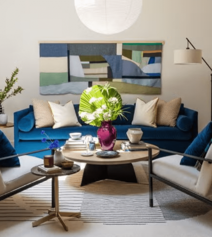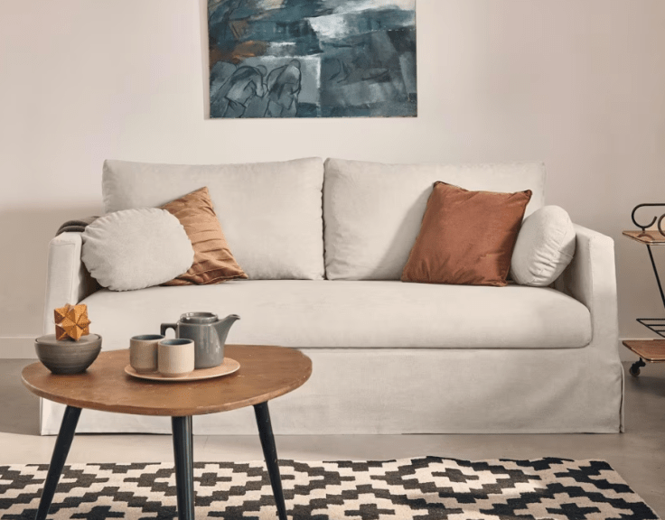 La taille et la forme du canapé peuvent influencer directement la façon dont vous vous déplacez dans le salon, vous devez donc laisser au moins 60 à 90 cm libres autour de la structure, comme c’est également le cas avec les canapés trois places , et si vous avez un petit salon, il est préférable de le placer à côté du mur ou dans un coin et de placer des tables d’appoint avec des pieds hauts à proximité pour éviter de saturer visuellement l’environnement.