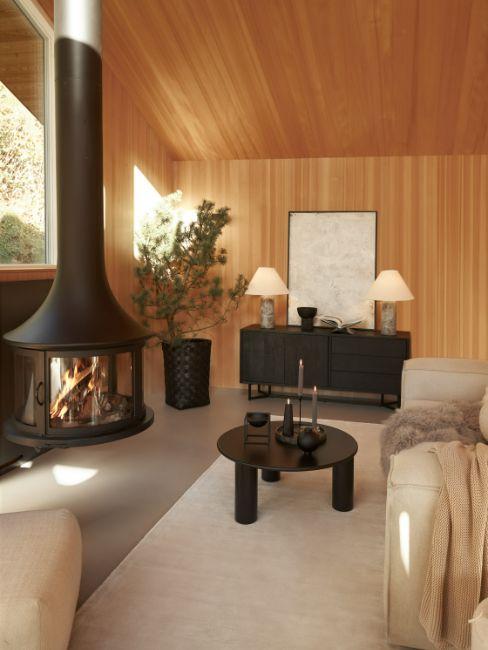 - Secret : Le bois clair (chêne, frêne, pin) domine, souvent laissé brut ou légèrement huilé pour mettre en valeur son grain. Le cuir, la laine et le lin complètent l’esthétique organique.
