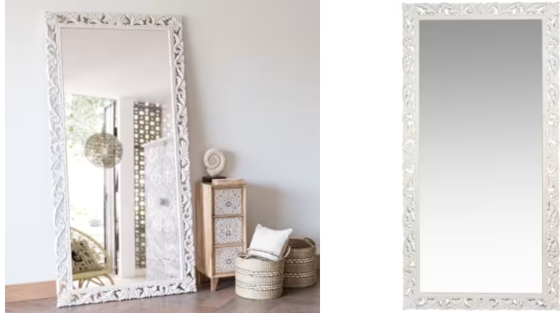 LOMBOK – Grand miroir rectangulaire en bois de manguier sculpté blanc 90×180 209,00 € Maisons du Monde