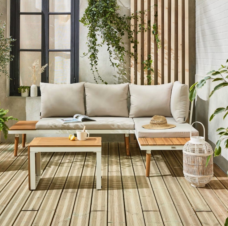 De style scandinave, ce salon de jardin 4 places dispose d’une structure en bois d’acacia pour un aspect naturel et authentique, ainsi que d’aluminium pour la durabilité. Sao paulo – Salon de jardin modulable 4 places Maisons du Monde 459,99 €