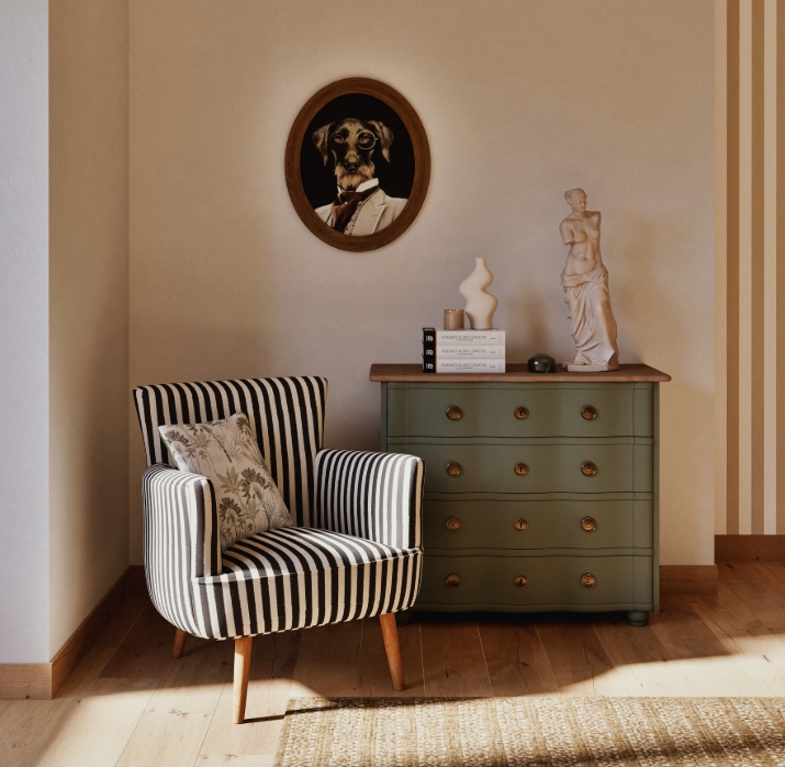 Gustavia – Commode 4 tiroirs vert kaki et métal doré est un choix de meuble élégant et pratique qui répondra à tous vos besoins de rangement. Maisons du Monde 479,00 €