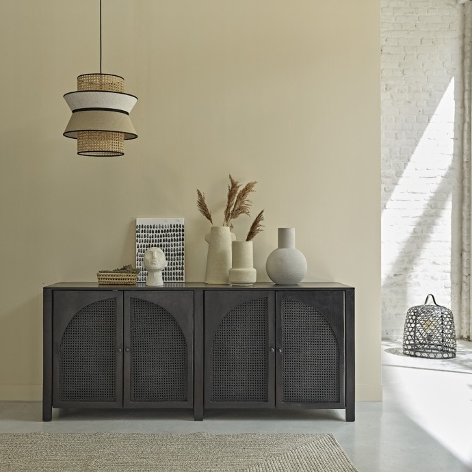 Total look noir pour ce buffet en bois de manguier et cannage. On imagine bien ce buffet prendre place dans votre salle à manger et apporter une note très chic. 899 € Berah Getah